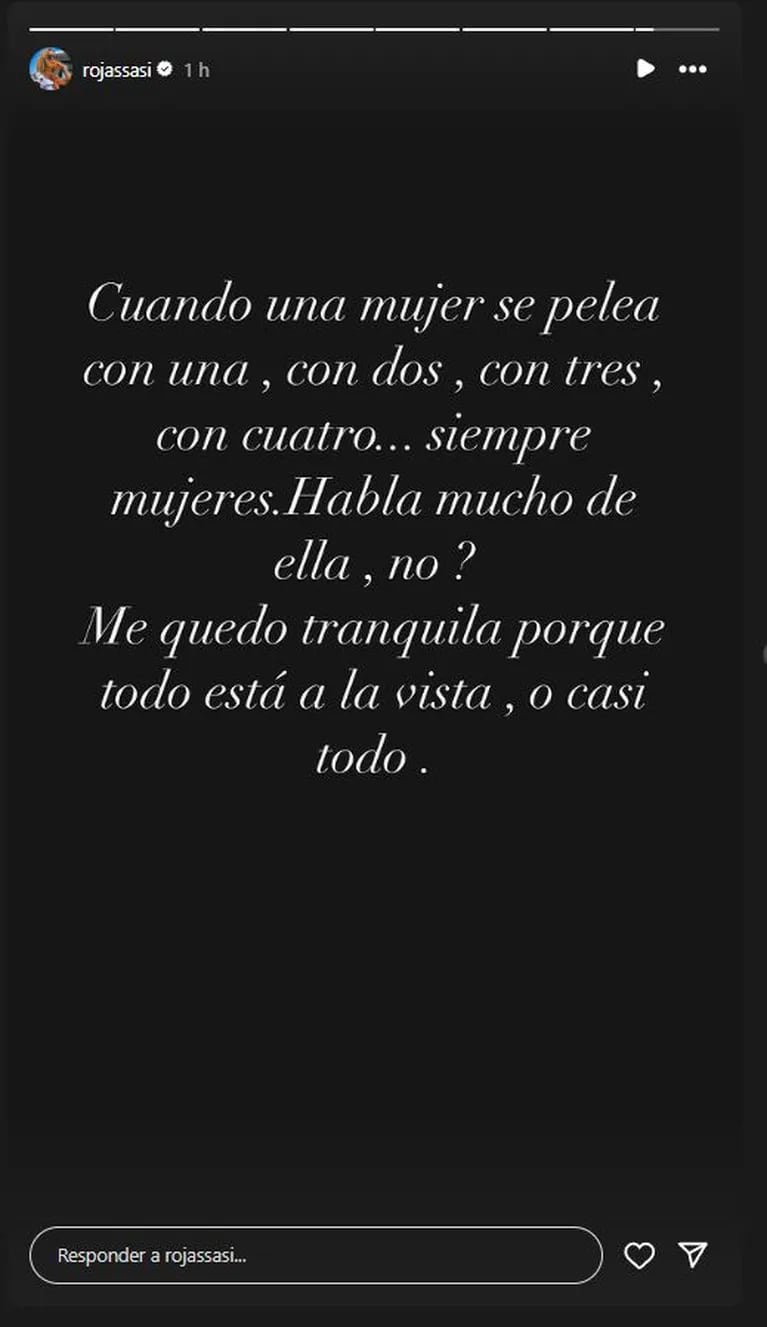 Tras los dichos de la intérprete de “Puedo solita”, Rojas se limitó a escribir la frase “Respiro profundo” en sus historias de Instagram. Pero ahora no dejó lugar a dudas con un mensaje más que contundente.