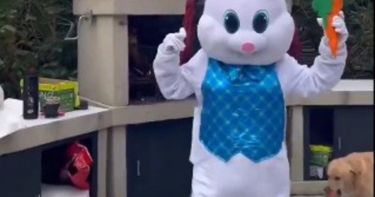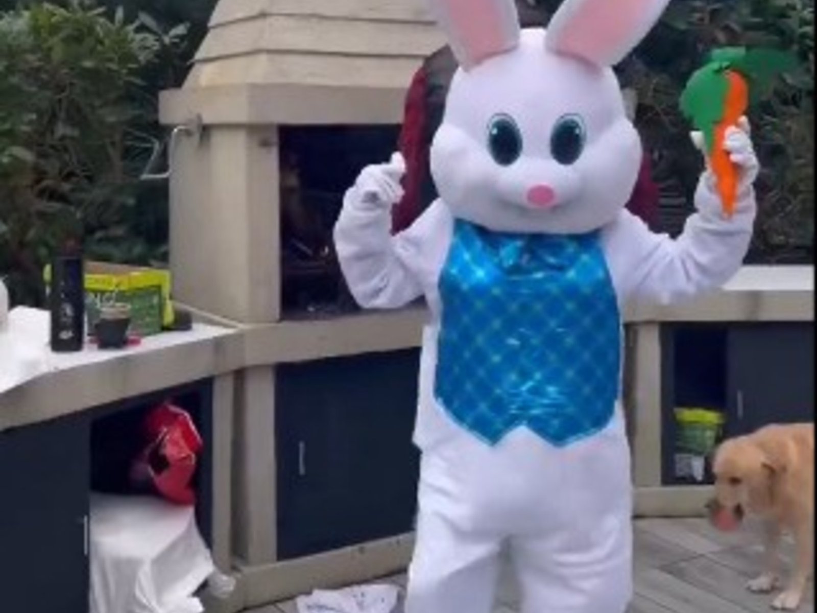Además de la presencia de su familia, se ve a alguien disfrazado de conejo divirtiéndose con el arquero mientras éste desempeña sus dotes culinarios.