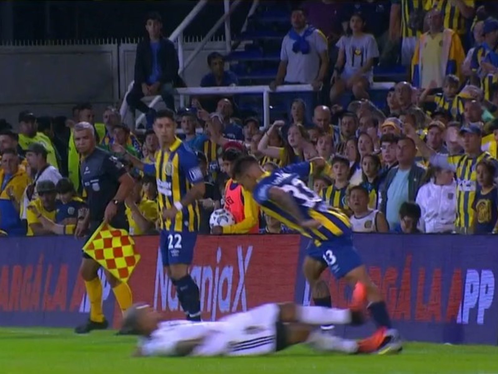 Arrancó movido el encuentro en Rosario. Primero, a los 9 minutos de juego, el árbitro Andrés Merlos -tras ser llamado por el VAR– cambió por roja la tarjeta amarilla que le había mostrado a Céliz. Y acertó. Es que el número ‘8’ del Malevo impactó de lleno con los tapones de su botín zurdo contra la rodilla izquierda de Emanuel Coronel.