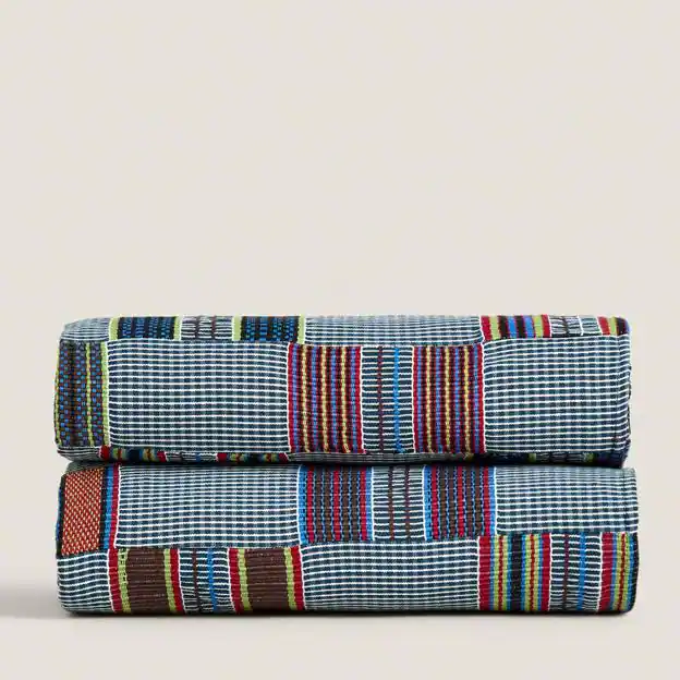 En la ropa de cama también apreciamos diferencias, mucho más divertidas, con colores llamativos y estampados originales, que te invitan a dejar las clásicas colchas blancas a un lado. (169 euros).