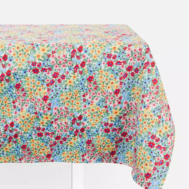 Si optas por unos elementos decorativos más sencillos, entonces es el momento idóneo de que el mantel tenga todo el protagonismo. (12 euros).