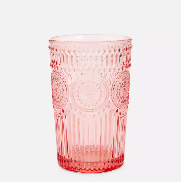 Los vasos también puedes ser divertidos, y prueba de ellos son estos en color rosa y diseño en relieve. (3,50 euros).