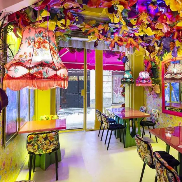 Sentarse a la mesa de Rosi la Loca es estar preparado para dejarse sorprender. En pleno centro, el lema de «más es mejor» es la esencia de la decoración de este restaurante que se autodenomina como la «taberna de locos». Es una auténtica explosión de colores vivos y fantasía, con las flores como grandes protagonistas, que podemos encontrar en el papel de la pared o colgadas del techo en versión maxi.