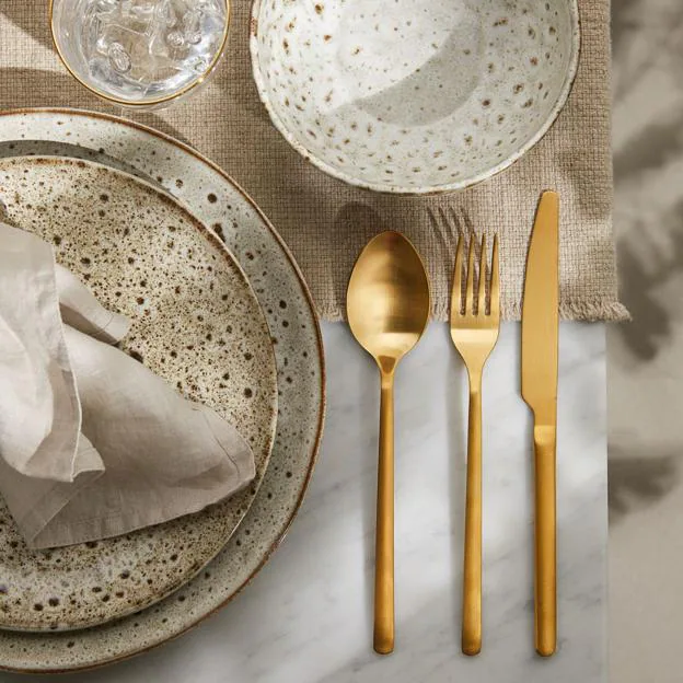 ¿Cansada de la clásica cubertería que no dice absolutamente nada? Hemos fichado esta opción en dorado, que no puede ser más ideal. (9,99 euros).