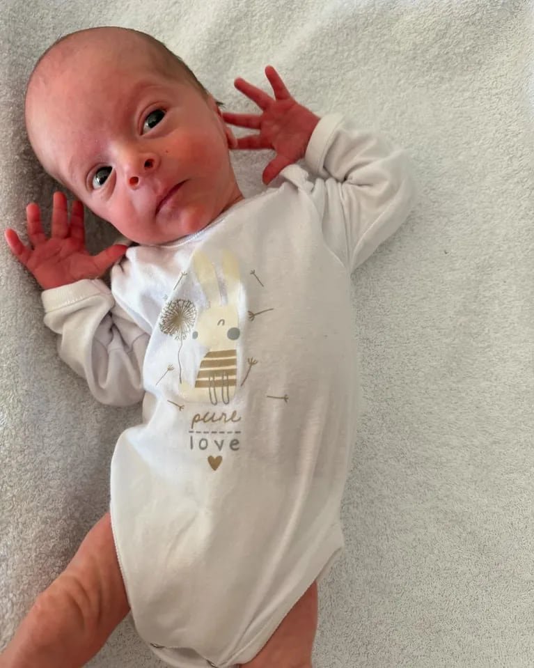 “Mi pulguita”, sumó junto a una foto de Beltrán con un gorrito de lana y la pulserita de la clínica en su muñeca derecha.