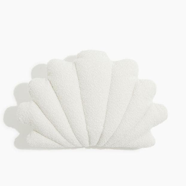 Hasta los cojines se impregnan de esa esencia marina. Prueba de ello es este diseño en forma de concha, ideal para combinar con otros en colores llamativos (29,99 euros).