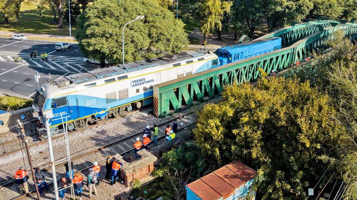 A una semana del siniestro ferroviario producido en el ramal de la línea San Martín, la estatal Trenes Argentinos informó que continúan con los trabajos de alineación y nivelado de las vías dañadas por el choque de formaciones que se produjo sobre el viaducto a la altura de la avenida Figueroa Alcorta, en su cruce con Dorrego.