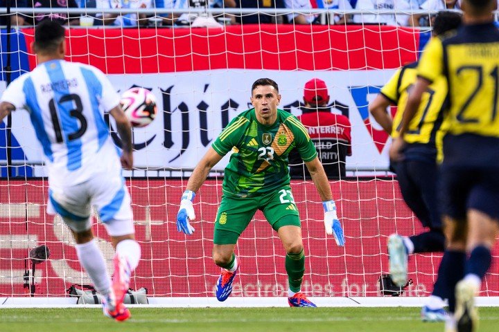Emiliano Martínez (6): casi no tuvo atajadas con las manos, paradójicamente, pero sí dos intervenciones claves. La segunda sobre la hora cuando fue al piso para frenar a Enner Valencia, que había robado una pelota en la salida.