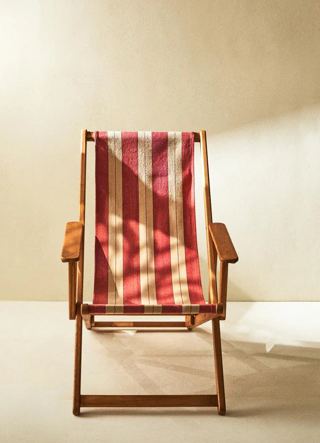 Nos encantarían esas tumbonas completas, pero la realidad es que ocupan mucho espacio. Es aquí donde entra la alternativa de Zara Home, que además de ser práctica, no puede ser más bonita. Se trata de una silla tumbona de madera de fresno con tejido de lino.