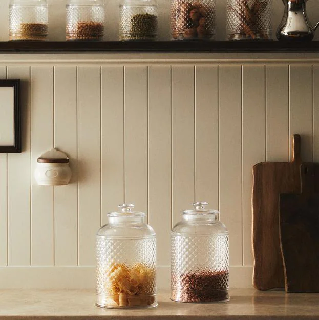 Si eres de las que cuenta con una despensa o un buen espacio y al mismo tiempo es amante de la organización, estos botes de cristal son perfectos para ti, donde colocar la pasta, el arroz o las legumbres y quedar ideal (19,99 antes 29,99 euros).