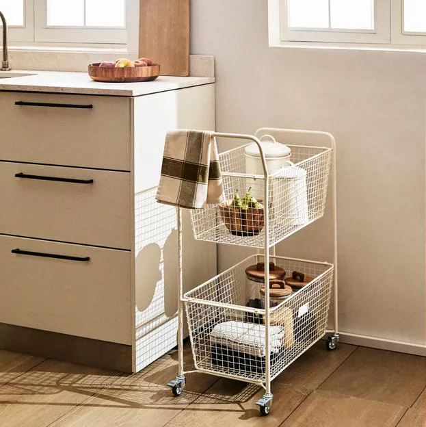Otra forma de mantener el espacio ordenado, y conservar una estética adecuada, es a través de un carro como este. En color blanco, combina con absolutamente todo, y puedes colocarlo en cualquier rincón de tu cocina (59,99 antes 89,99 euros).