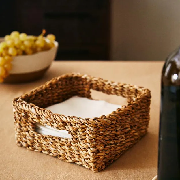 De servilletero, para colocar algunos utensilios o simplemente para que sea meramente decorativa, esta cesta de seagrass no puede ser más ideal y nos encanta especialmente para la zona de la cocina (5,99 antes 7,99 euros).