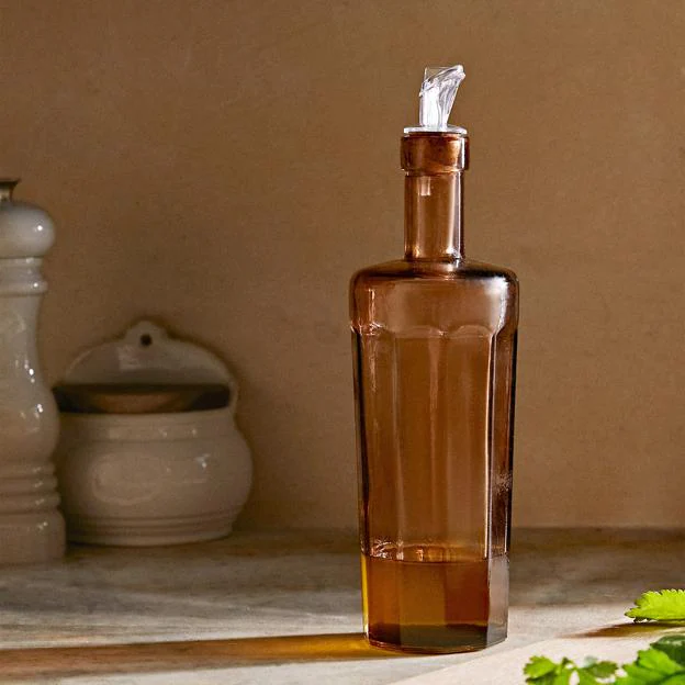 Hasta los elementos más banales puedes ser bonitos y prueba de ello es esta aceitera vidrio facetado con corcho. Tiene un toque antiguo retro que nos encanta, y que puede formar parte de la decoración solamente con dejarla a la vista (9,99 antes 12,99 euros).