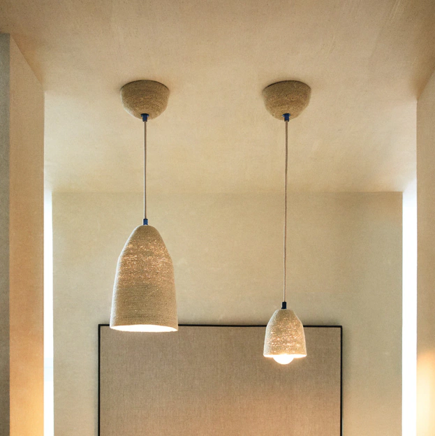 Más acorde a la temporalidad del verano, fichamos esta lámpara de techo cónica de seagrass, que es una opción perfecta para quienes buscan incorporar elementos naturales y un toque rústico a su decoración. Su forma permite una distribución de luz suave y agradable, ideal para crear ambientes acogedores en cualquier espacio, tanto de interior como de exterior (19,99-39,99 euros).