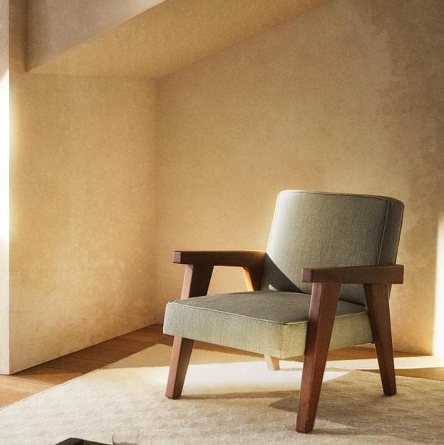 También encontramos muebles esta semana, que lo cierto es que ya se han colado en nuestra lista de deseos. Como esta butaca tapizada en lino grueso con brazos de madera maciza de nogal, que será la protagonista de tu salón (599 euros).