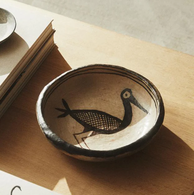 En el menaje de cocina también vemos como el estilo hace su aparición, dejando las clásicas opciones blancas lisas a un lado. Este bol es el ejemplo perfecto, con dibujo de pelícano en el interior y diseño artesanal (49,99 euros).