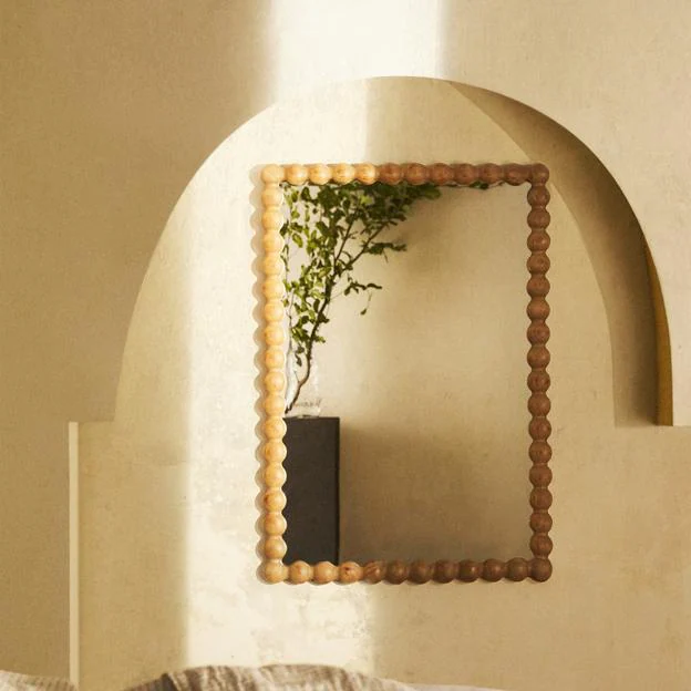 Si todavía no tienes un espejo en esa pared vacía de tu casa, no sabemos a qué estás esperando. Estamos seguras que después de ver este con marco de madera de mango tan original, te hemos convencido de que necesitas uno (129 euros).