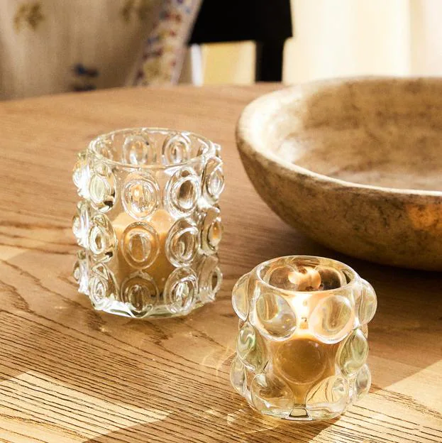 Los pequeños detalles son los que marcan las grandes diferencias, y prueba de ello son estos portavelas que no nos pueden gustar más. En clave de cristal y con esferas por toda la superficie, ya se han venido con nosotras a casa (7,99 euros).