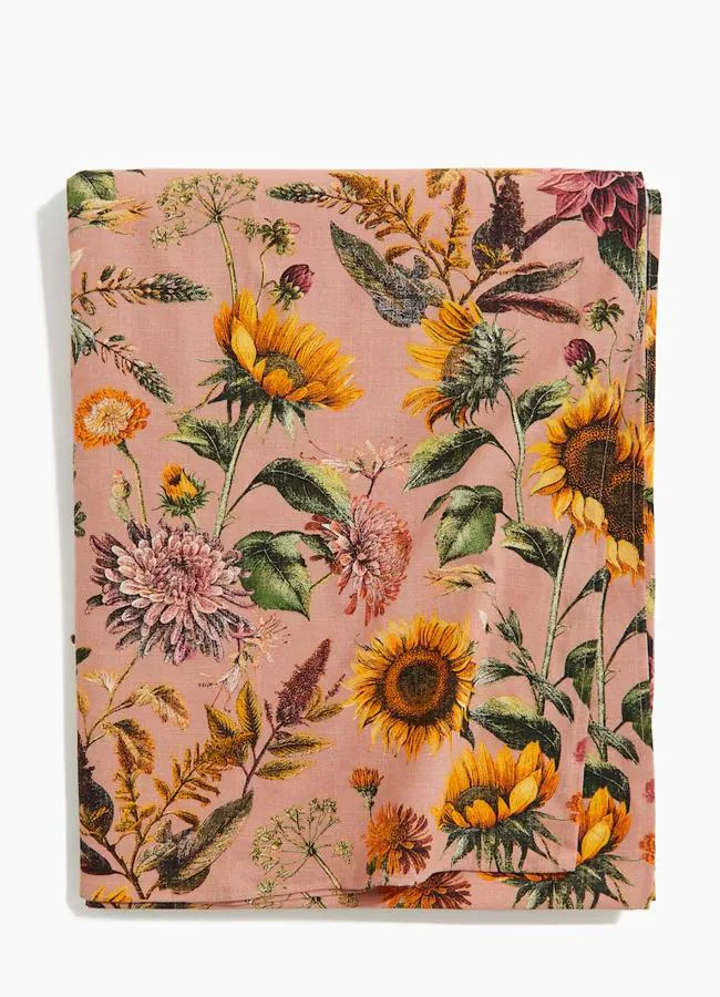 Si eres de las que organiza almuerzos en casa, y quieres sorprender a tus invitados, entonces tienes que optar por un mantel con estampado de flores como este, dando rienda suelta a tu imaginación con el resto de elementos (19,99 euros).