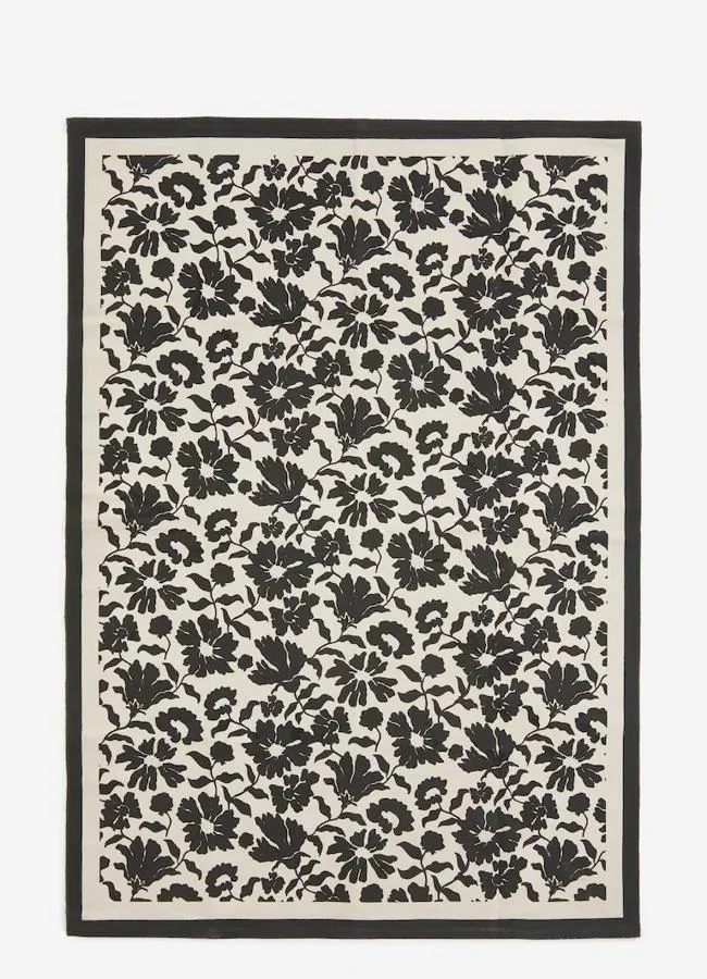 Las alfombras son una de nuestras inversiones preferidas, porque cambian el espacio en un solo gesto. Esta con la combinación clásica de blanco y negro, dará el toque elegante y sofisticado a cualquier rincón de tu casa (69,99 euros).