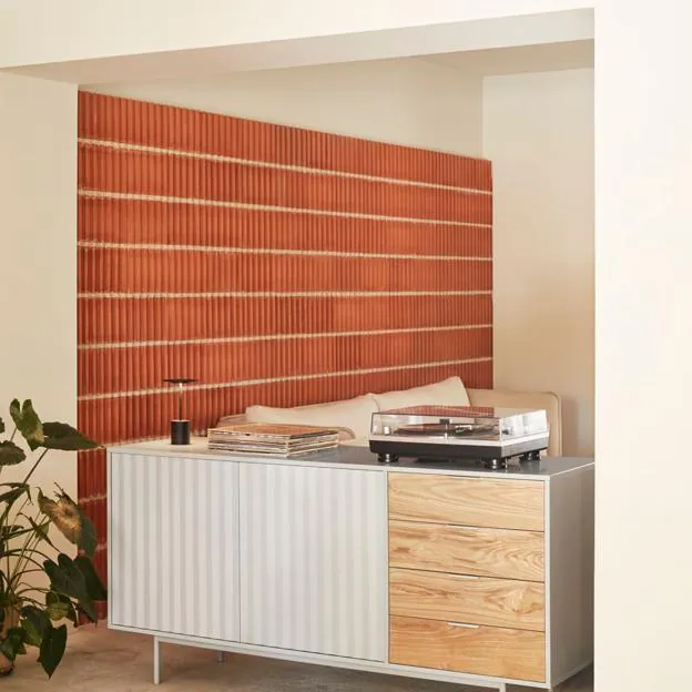 la iluminación del espacio en el que incluyas esta tonalidad. Las luces cálidas y tenues son perfectas para rebajar la intensidad del rojo, creando una atmósfera agradable e íntima, que ayude a abrazar el ambiente y aporte toques puntuales de luz allá donde se necesite.