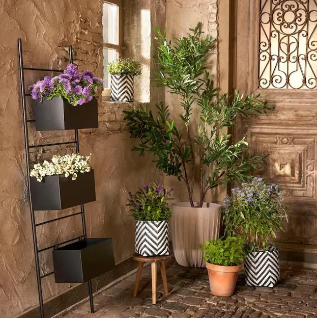 En el caso de que cuentes con el suficiente espacio, y quieras sumarte al hobby de la jardinería, este macetero grande en metal pintado es infalible, pudiendo jugar con la altura de las flores, creando tu pequeño jardín personalizado (34,99 euros).