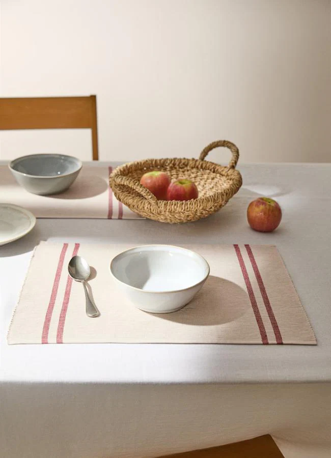 Otra alternativa de salvamanteles, que no hemos podido evitar llevarnos a casa, han sido estos de algodón con rayas tejidas en rojo, uno de los colores predilectos en las tendencias de decoración actuales (9,99 euros).