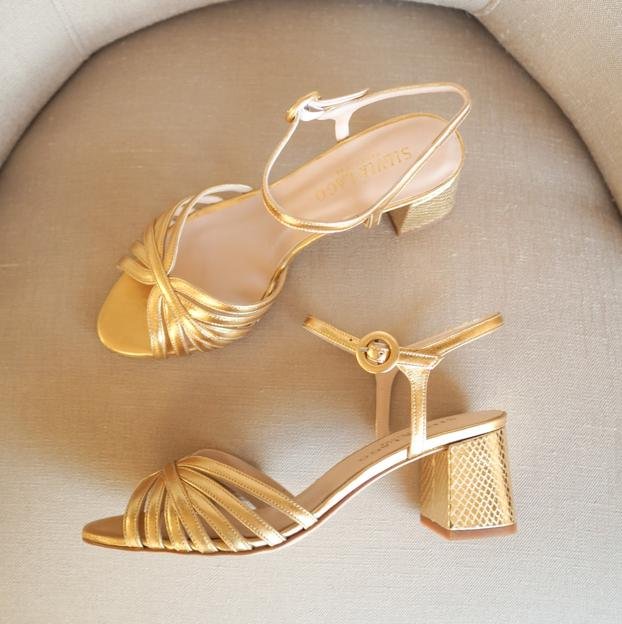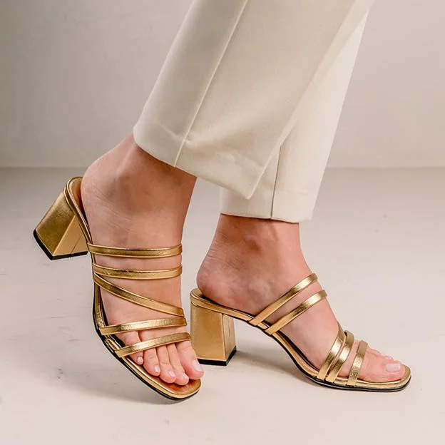 De Mim Shoes (rebajadas a 39 euros). Tienen el tacón en color dorado brillante.