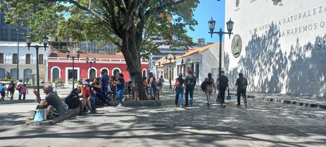 La jornada comenzó a media máquina en el centro fundacional de la capital, donde confluyen sitios de relevancia histórica como la Plaza Bolívar, la más importante de la ciudad; entes públicos, como la Cancillería, el Banco Central de Venezuela y el Ministerio de Finanzas, además de comercios y restaurantes.