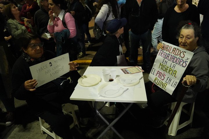 La mayoría de los invitados ingresaron por la entrada de Maipú. A pocos metros, un grupo de jubilados realizaron una protesta e hicieron sentir el batir de sus cacerolas en rechazo a un encuentro al que consideraron una provocación.
