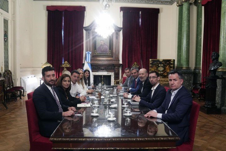 Los diputados de la UCR junto a Martín Menem y SturzeneggerSemanas atrás, Sturzenegger estuvo en el Congreso para reunirse con el bloque radical y explicar su idea. En la bancada de la UCR, una mayoría le parece razonable la iniciativa.