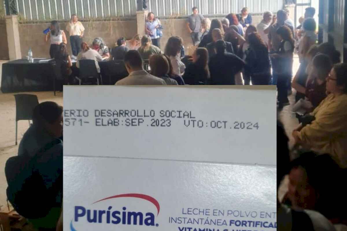 El comunicado fue enviado durante el feriado del viernes pasado y convocaba a los directivos a retirar los lotes de leche en polvo a directivos de escuelas que ofrecen el servicio de refrigerio-comedor. Las imágenes del alimento entregado circularon rápidamente por redes sociales y puede leerse que el producto fue elaborado para el «Ministerio de Desarrollo Social»  en septiembre 2023 con  «vencimiento octubre 2024».