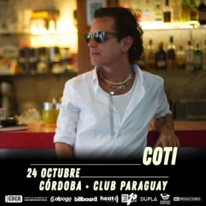 Este jueves 24 de octubre, Club Paraguay se enorgullece en presentar a Coti, una de las figuras más versátiles y talentosas de la música en español. Reconocido no solo como un destacado artista de pop y rock, sino también como un productor excepcional, Coti ha dejado su huella en la industria musical con su creatividad y estilo único.