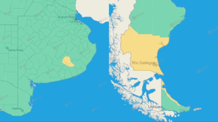 La temperatura será cálida hoy en Rawson, con 26 grados, mientras que Río Gallegos tendrá una máxima de 16. En Puerto Argentino la máxima es de 10 grados y, en Ushuaia, de nueve. Al frío hay que sumarle alertas meteorológicas anunciadas por el SMN: al oeste de Santa Cruz hay alerta amarilla por lluvia, mientras que en el resto del sur de la provincia el alerta es por viento, lo mismo que en la costa este de Tierra del Fuego.