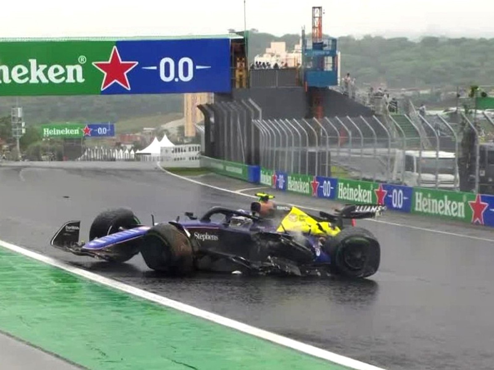 Franco Colapinto esperaba tener su fin de semana soñado en Brasil. El viernes, antes de las prácticas, se enteró de la muerte de su abuelo. El sábado terminó 12 en el sprint, pero el domingo tuvo dos despistes con roturas en su vehículo: el primero fue en la Q1, el argentino despistó tras hacer una buena marca y se puso en duda su salida en la carrera, pero finalmente su equipo pudo arreglar el coche y el nacido en Pilar fue de la partida. Pero la pista de Interlagos fue un verdadero infierno para los pilotos y en la vuelta 32, Franco despistó en la recta y destrozó su Williams.