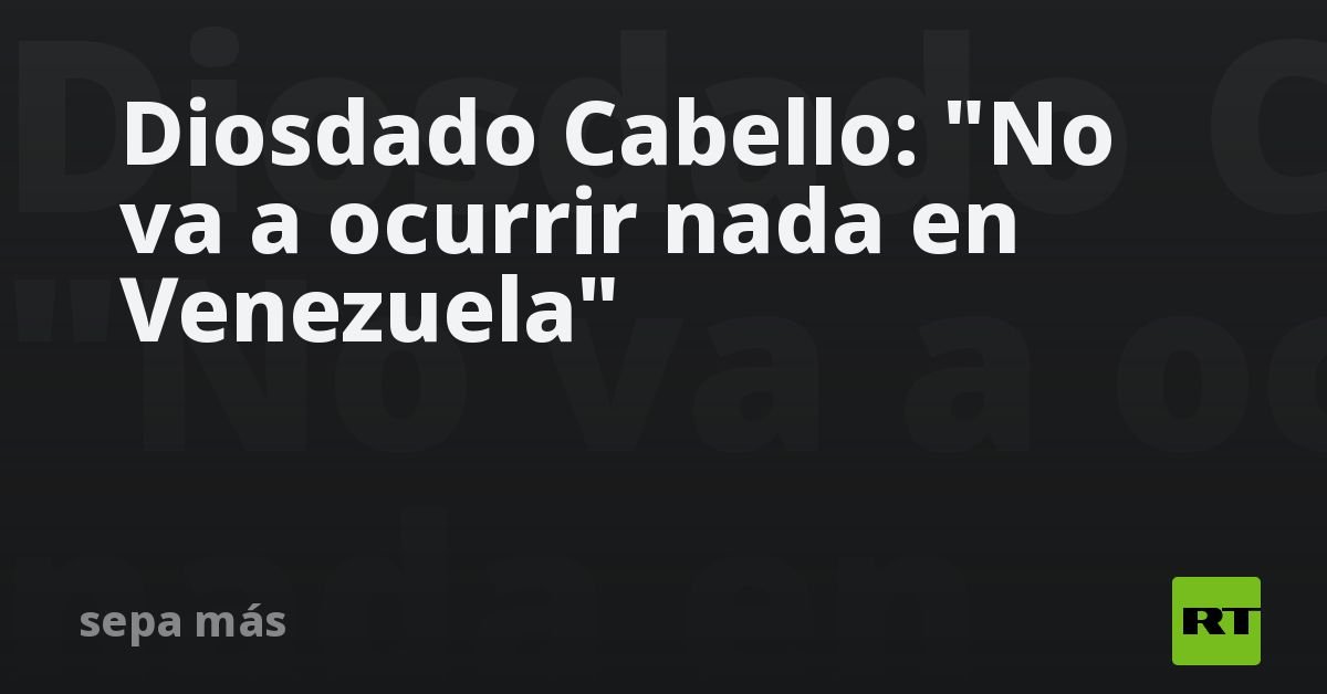 El ministro de Interior, Justicia y Paz de Venezuela, Diosdado Cabello, ha asegurado este sábado que la toma de posesión de Nicolás Maduro el próximo 10 de enero, de la que se encargan las fuerzas del orden del país, transcurrirá en paz y tranquilidad. «Estamos seguros que no va a ocurrir nada en Venezuela, [que] va a ser paz, tranquilidad», afirmó en declaraciones transmitidas por VTV.