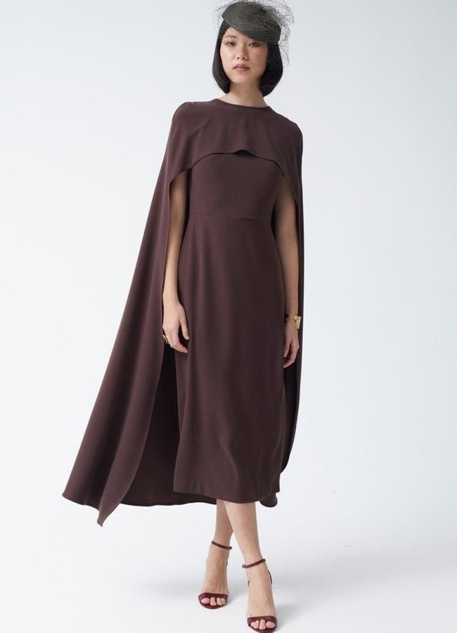 Es un color súper sexy y la alternativa perfecta al negro y al azul marino, con un toque mucho más moderno. Es el consejo de Juan Avellaneda y lo puedes probar con este vestido de Coosy con una capa fluida integrada que transmite elegancia clásica y modernidad (210 euros).