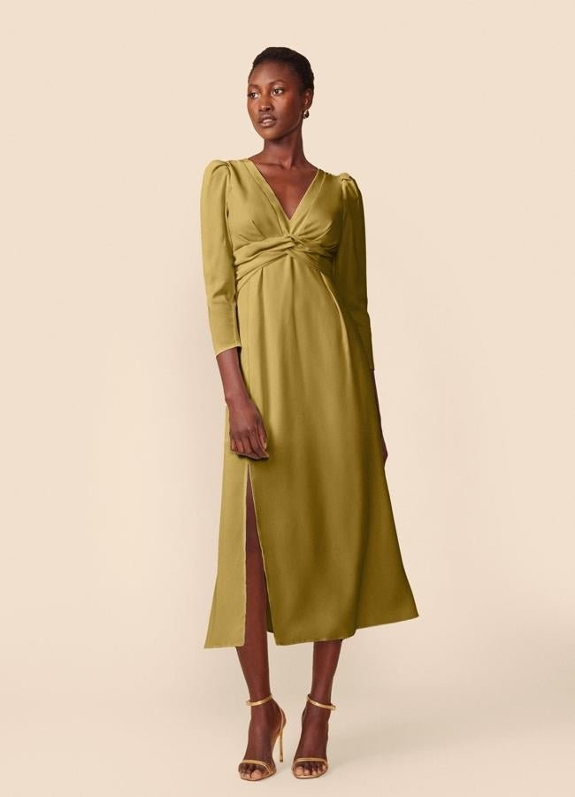 Bruna con manga francesa y escote a pico con diseño de nudo fruncido (185 euros).