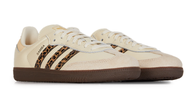 Para quienes prefieren una interpretación más sutil, la edición exclusiva Courir x Adidas Samba incorpora el estampado felino en las icónicas tres franjas, ofreciendo un look trendy sin renunciar a la versatilidad. Precio: 100 euros en Courir.