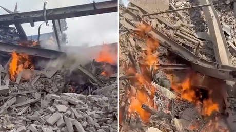 Según varias imágenes que se han difundido en la Red, no ha quedado nada más que escombros del edificio que fue totalmente destruido.
