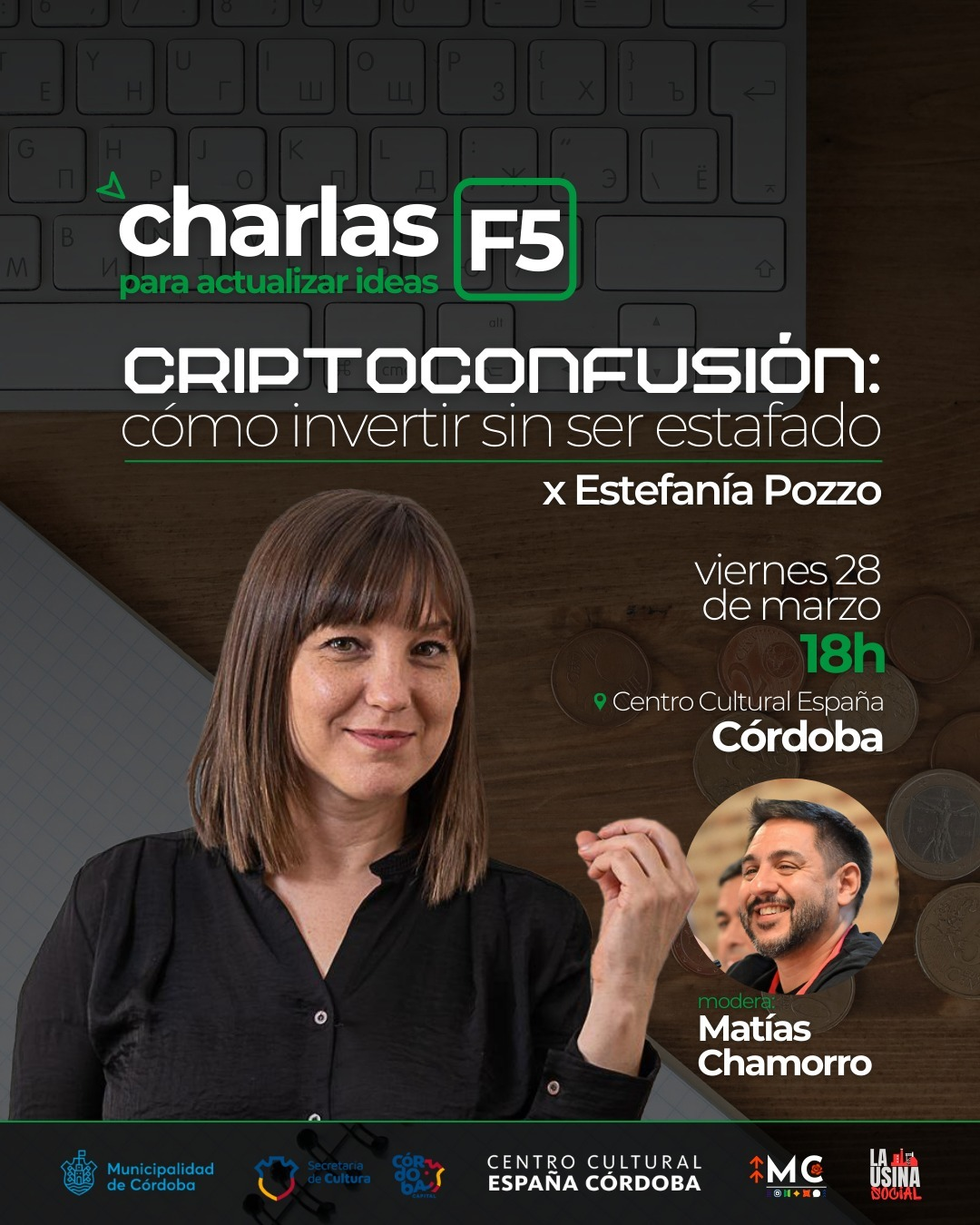 Estuvimos hablando con la periodista Estefanía Pozzo, que nos contó acerca del evento que habrá hoy en el Centro Cultural España Córdoba, sobre criptomonedas y evitar las estafas.