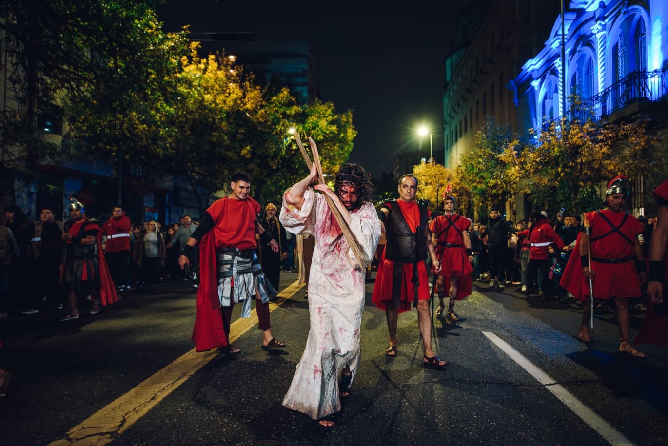 A través de diez escenarios distribuidos en el casco histórico de la ciudad, los asistentes pudieron vivenciar una experiencia de profunda reflexión. El Vía Crucis comenzó en el Teatro Real y se extendió hasta el Buen Pastor, donde se desarrollaron las últimas cuatro estaciones.