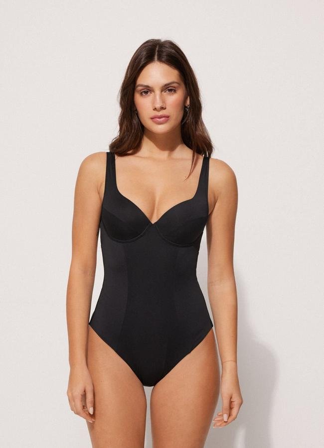 Este bañador es de Calzedonia y tiene un tejido compacto diseñado para realzar y resaltar las curvas, que proporciona una excelente contención y está pensado para que todas las mujeres se sientan cómodas, no ceñidas. Precio: 79 euros.