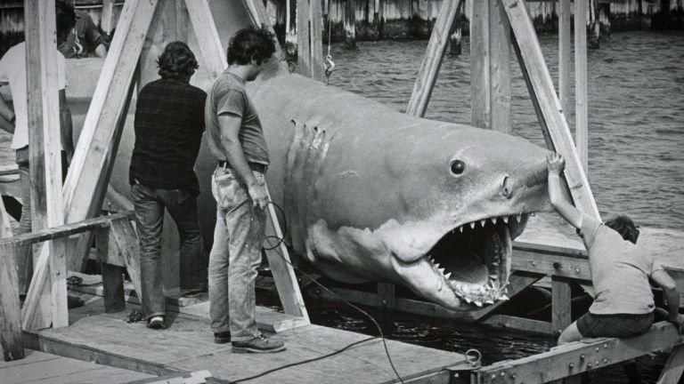 Mucho se sabe del tiburón robótico que no funcionaba al momento del rodaje. Que el muñeco no estaba terminado, que era fallido, que Spielberg tuvo que apelar a la sugestión hitchcockiana para evitar que el defectuoso artefacto se perciba. También la creación de una campaña publicitaria inédita para la época que creaba la expectativa sobre la película y su experiencia aterradora en cines.