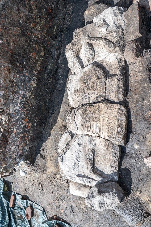 Anteriormente, los investigadores habían descubierto en el mismo yacimiento una lápida de 150 cm de largo del siglo XIII o XIV que representa a un caballero. El relieve en piedra representa a un caballero con cota de malla, ostentando su espada y escudo, lo que ofrece una visión de las tradiciones funerarias de los guerreros medievales.