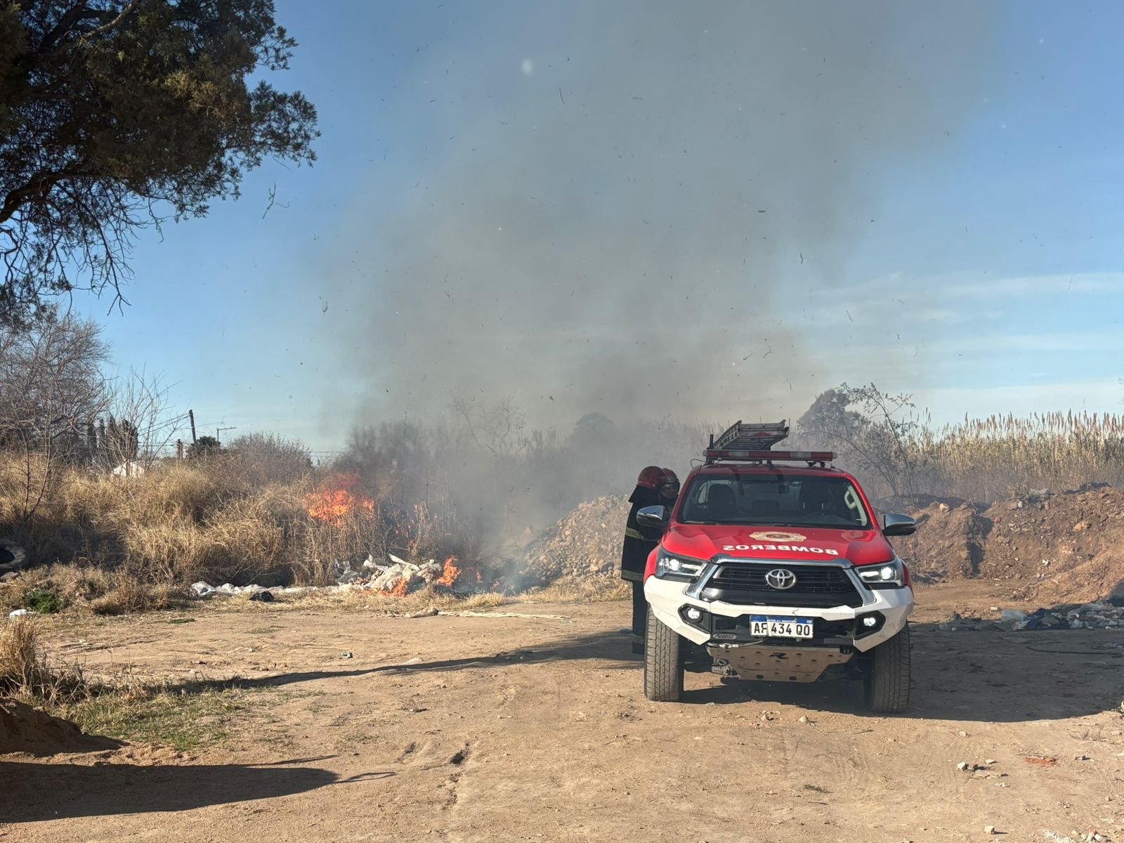 En lo que va del mes, Defensa Civil acompañó y asistió a los Bomberos de la Provincia en la contención de incendios de pastizales en cinco locaciones y otros cinco basurales de la ciudad.