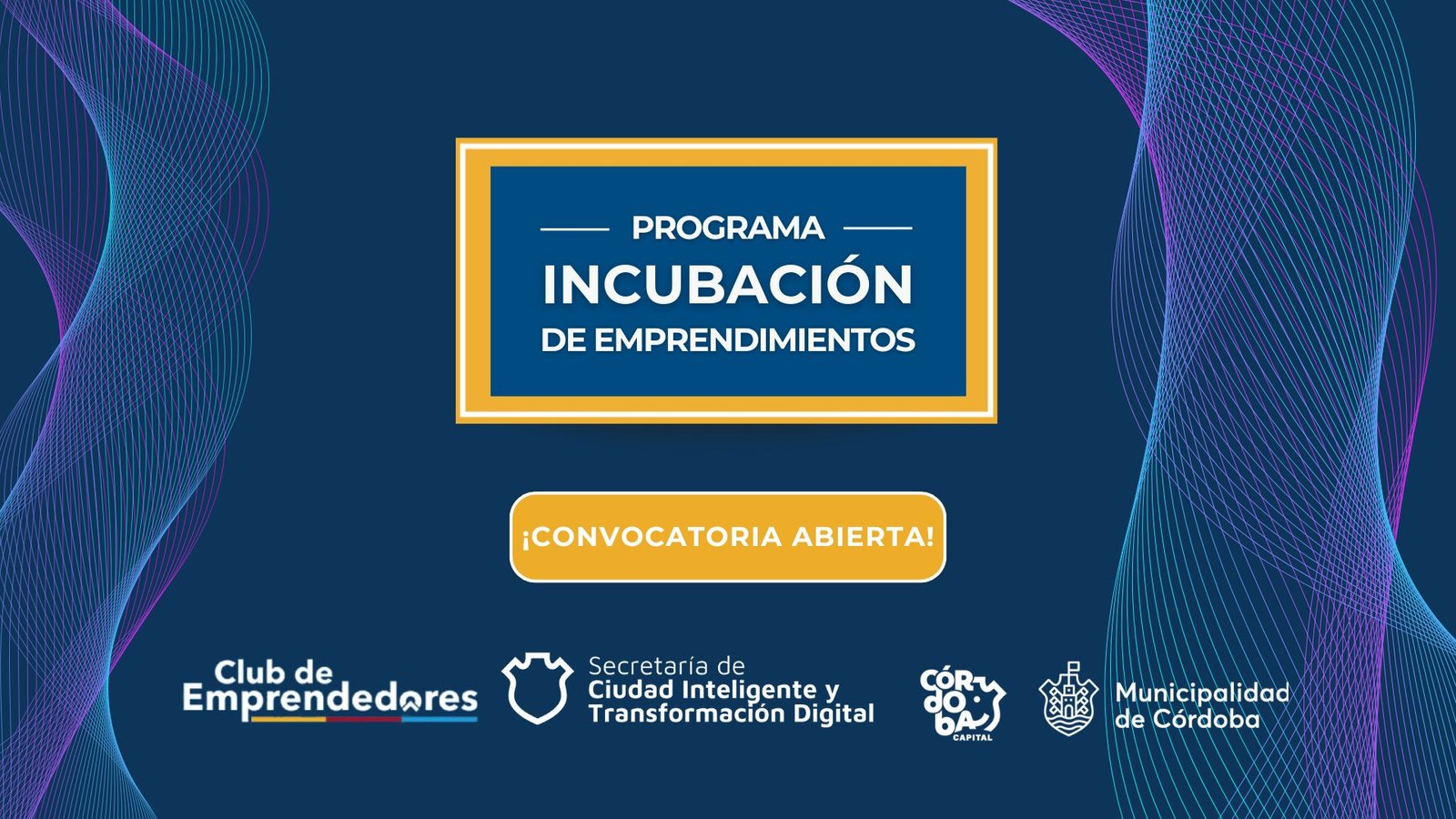 El Programa de Incubación es posible gracias al acompañamiento de Secretaría de Innovación Y Vinculación Tecnológica de la UNC; Centro Andén de la UTN; Universidad Siglo 21; Centro De Emprendedorismo e Innovación de la UCC; Doing Labs Universidad Blas PascaL; UNDEF (Universidad de la Defensa Nacional); Fundación Global Shapers Córdoba; FIDE Incubadora de Empresas; Fundación E+E; Fundación Gen E; Technology with Purpose Fundation; Remax; Banco de Córdoba y Ecosistema Emprendedor de Córdoba.