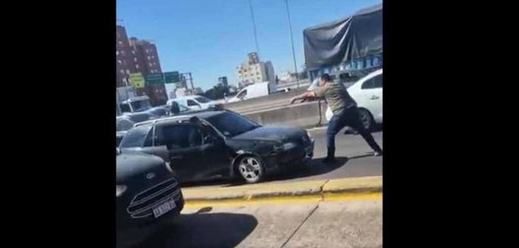 La escena, que fue filmada por un testigo, es ejemplo de la violencia urbana que se vive en distintos puntos del país. Al parecer, el hombre primero discutió con otro conductor y, tras esto, se bajó del auto con un arma y lo amenazó.