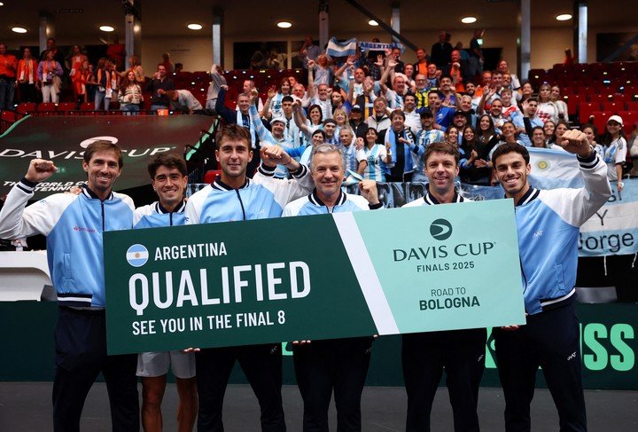 El equipo argentino que venció a Países Bajos y se metió en el Final 8. Foto REUTERS/Piroschka Van De Wouw«Argentina, como gran nación tenística, es un rival difícil. Con Cerúndolo y Etcheverry, tienen dos jugadores individuales extraordinariamente buenos. Están muy bien posicionados, pero no son imbatibles. Espero un partido reñido», analizó Michael Kohlmann, capitán alemán.