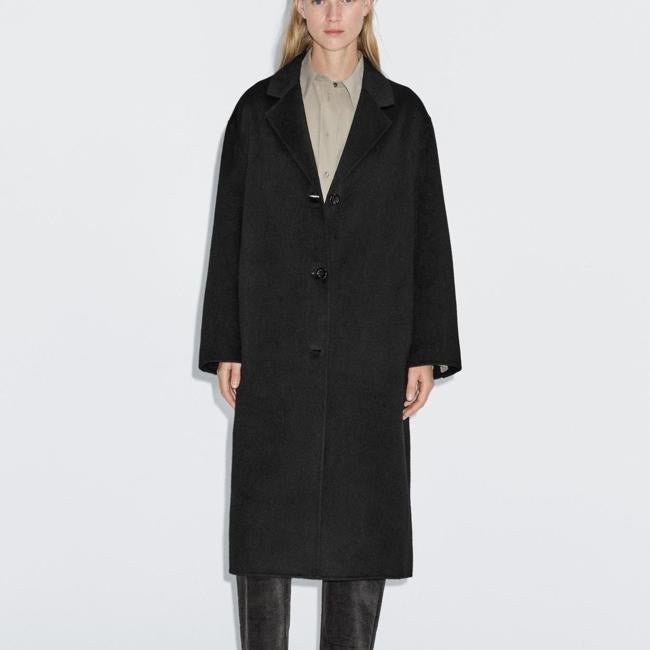 Abrigo largo negro, 249 euros. Si tienes claro que buscas un abrigo que te siga a lo largo de las temporadas, que puedas usar siempre y que se adapte a cualquier escenario, edad o estilo que tengas, el abrigo de lana negro largo es un clásico por el que merece la pena invertir.